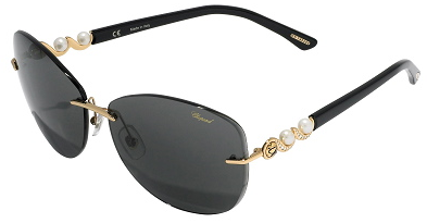 Chopard SCH877S Sunglasses Color Gold Black Pearls Gray Lens 0300 100% Authentic, Price Match, Original Case, Cloth and Certificate Of Authenticity.