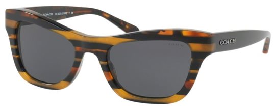 Coach HC8223 L1653 Sunglasses Color 544087 BLK AMBER GLTR VARSITY STRIPE 100% Authentic, Price Match, Original Case, Cloth and Certificate Of Authenticity.
