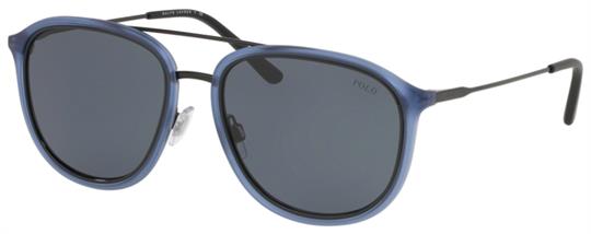 Polo PH4146 Sunglasses Color 573587 MATTE TRANSPARENT BLUE/BLACK 100% Authentic, Price Match, Original Case, Cloth and Certificate Of Authenticity.